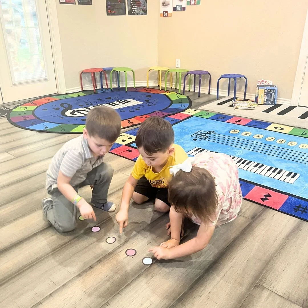 Children still march, clap, and explore xylophones, egg shakers, and rhythm sticks to reinforce that “steady beat” - while diving deeper into notes on the staff, simple rhythms, and musical symbols.