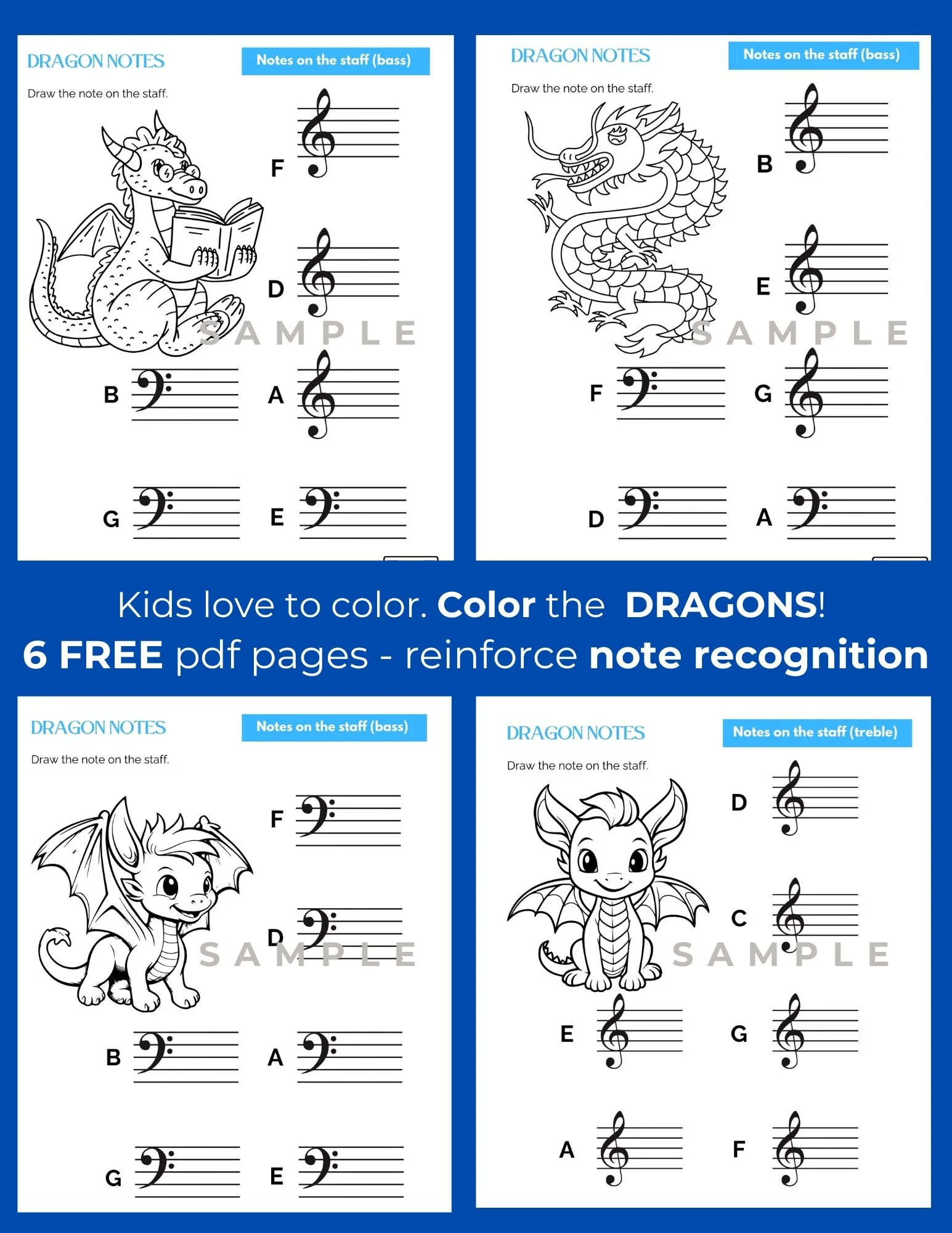 Free DRAGON Note Download6 Pages for Elementary Piano - Immediate pdf download! Download Dragon Notes! Download my 6 DRAGON PDF pages now. First Name Last Name Email Address GET DRAGON PAGES NOW We respect your privacy. I hope you enjoy your DINO pages. Make Music Fun!