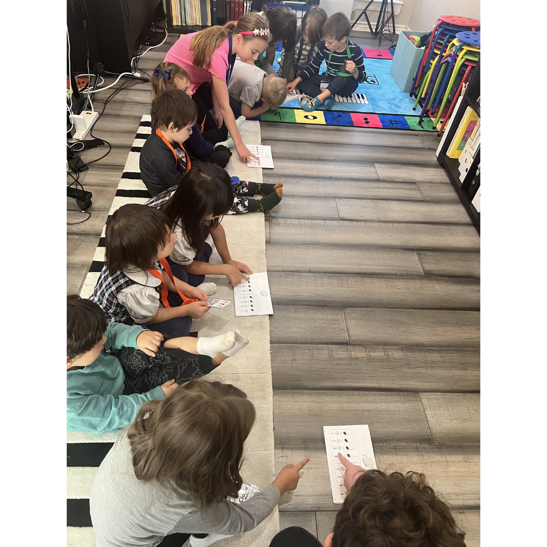 Children still march, clap, and explore xylophones, egg shakers, and rhythm sticks to reinforce that “steady beat” - while diving deeper into notes on the staff, simple rhythms, and musical symbols.